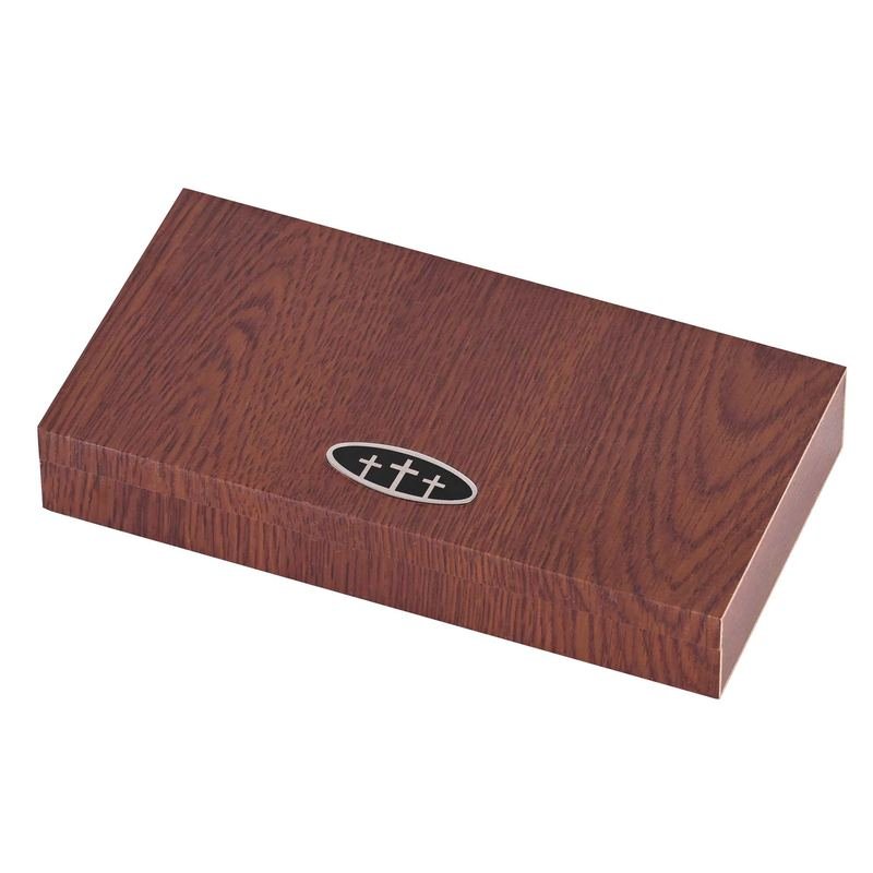 Boxed Pen And Keyring Set Is A Thoughtful Graduation Gift. Attractive Pen And Keyring Set Includes Pen With Faux Leather Rounded Barrel And A Small Cross Design, Plus Double Keyring With Brown Leatherette Padded Fob Displaying A Simple Black Cross. They Come Nestled In Black Flocked Tray Inside A Wood Gift Box With Lid. Underside Of Lid Has Graduation Theme With Psalm 20:4: May He Give You The Desire Of Your Heart And Make All Your Plans Succeed. Top Of Lid Features Triple Cross Design. Size Of Box When Closed Is 7-1/2 x 3-3/4 x 1-1/8. Comes In Slip Sleeve For Extra Protection. Pen Ink Is Black.Ingredients: Size: Color: Made In: United States