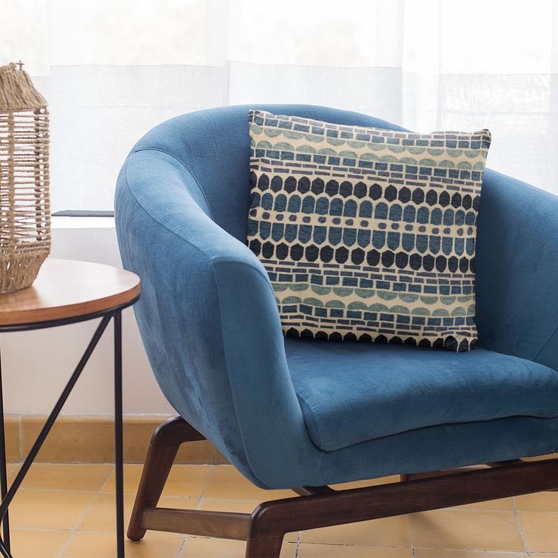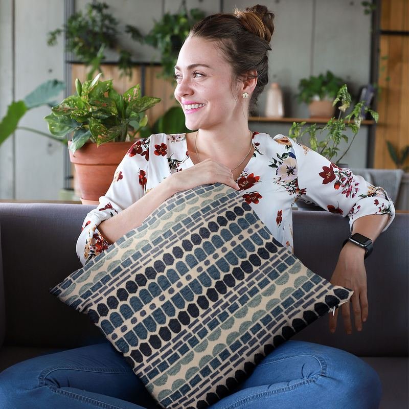 Luxury, trendy and definitely a conversation starter. Made from the finest materials to dazzle your eyes and feed your senses. Give your guests and vistors something to think about! Insert included. plutus blue harmony border luxury throw pillow. The fabric of this luxury pillow is a blend of Polyester.*Colors: Blue*Fabric Origin: China. Pillows are Handmade in USA*Double Sided pillow*Invisible zipper enclosure for a tailored look*All seams are over-locked and stitched for a professional finish*Pattern placement may vary slightly*Pillow measurements are seam to seam from the inside*Pillows include *Made in USA* Hypoallergenic Down Alternative Polyfill Insert*Dry Clean recommended*Fabric Content: 100% Polyester*Pattern: Border*Flammability: CAL 117-2013, NFPA 260, UFAC I*Cleaning Code: Spot Clean, and Dry Clean only*Due to monitor differences, actual colors may vary slightly from what appears online.