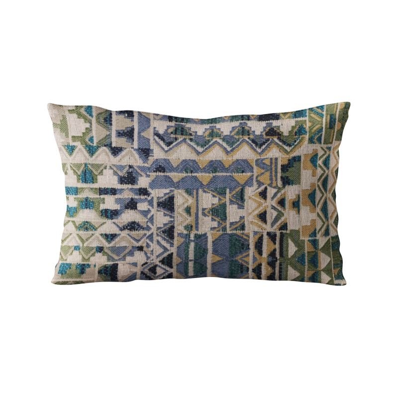Luxury, trendy and definitely a conversation starter. Made from the finest materials to dazzle your eyes and feed your senses. Give your guests and vistors something to think about! Insert included. plutus blue pyramids border luxury throw pillow. The fabric of this luxury pillow is a blend of Cotton, Acrylic, Polyester.*Colors: Blue*Fabric Origin: United States. Pillows are Handmade in USA*Double Sided pillow*Invisible zipper enclosure for a tailored look*All seams are over-locked and stitched for a professional finish*Pattern placement may vary slightly*Pillow measurements are seam to seam from the inside*Pillows include *Made in USA* Hypoallergenic Down Alternative Polyfill Insert*Dry Clean recommended*Fabric Content: 53% Cotton / 24% Acrylic / 23% Polyester*Pattern: Border*Flammability: CAL 117-2013, NFPA 260, UFAC I*Cleaning Code: Spot Clean, and Dry Clean only*Due to monitor differences, actual colors may vary slightly from what appears online. Hypoallergenic Down Alternative Polyfill
