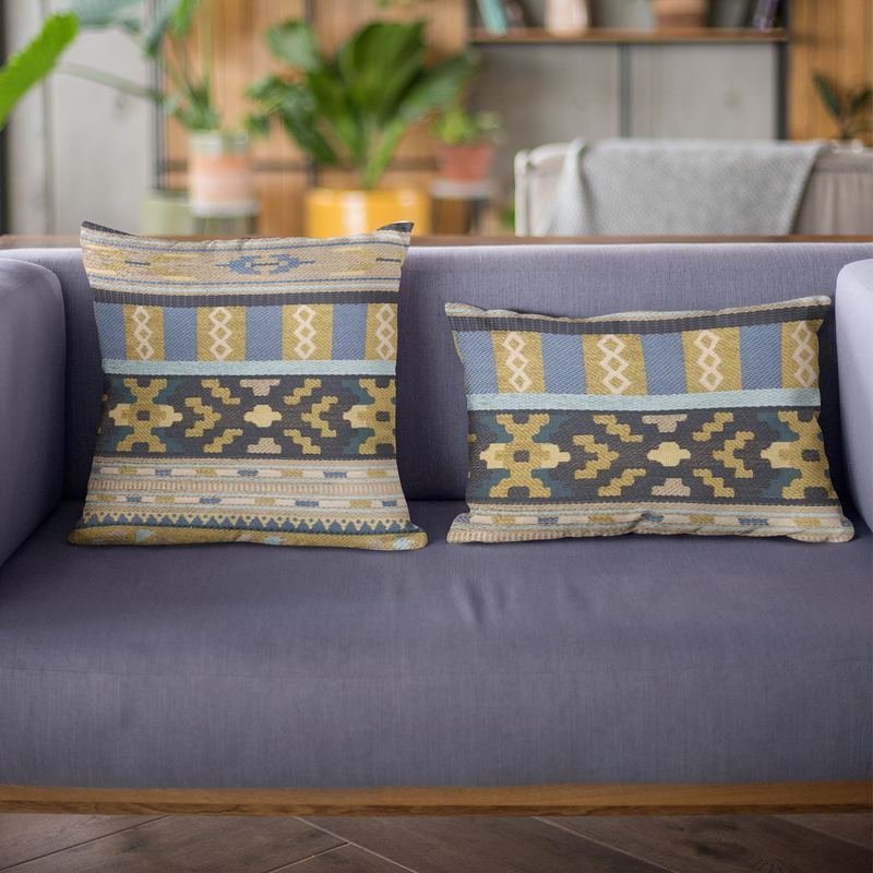 Luxury, trendy and definitely a conversation starter. Made from the finest materials to dazzle your eyes and feed your senses. Give your guests and vistors something to think about! Insert included. plutus blue unique lanes border luxury throw pillow. The fabric of this luxury pillow is a blend of Rayon, Polyester, Cotton.*Colors: Blue*Fabric Origin: United States. Pillows are Handmade in USA*Double Sided pillow*Invisible zipper enclosure for a tailored look*All seams are over-locked and stitched for a professional finish*Pattern placement may vary slightly*Pillow measurements are seam to seam from the inside*Pillows include *Made in USA* Hypoallergenic Down Alternative Polyfill Insert*Dry Clean recommended*Fabric Content: 41% Rayon / 36% Polyester / 23% Cotton*Pattern: Border*Flammability: CAL 117-2013, NFPA 260, UFAC I*Cleaning Code: Spot Clean, and Dry Clean only*Due to monitor differences, actual colors may vary slightly from what appears online. Ingredients: Hypoallergenic Down Alternative PolyfillSize: Double sided 16″ x 16″Color: BlueMade In: United States