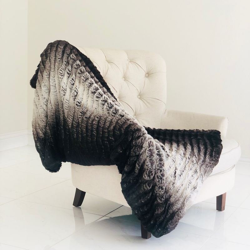 Plutus Chocolate Brown Ivory Faux Fur Luxury Throw