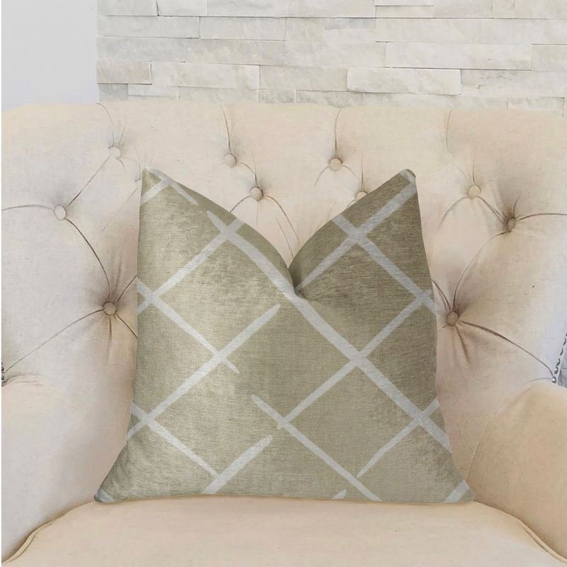 If eyes are the windows to the soul, then this decorative pillow is the windows to the design beauty of one’s dream. Add a special touch of texture and comfort to your living space with this designer plutus davinci beige and brown luxury throw pillow. The fabric of this luxury pillow is a blend of Cotton.*Colors: Beige and Brown*Fabric Origin: United States. Pillows are Handmade in USA*Double Sided pillow*Invisible zipper enclosure for a tailored look*All seams are over-locked and stitched for a professional finish*Pattern placement may vary slightly*Pillow measurements are seam to seam from the inside*Pillows include *Made in USA* Hypoallergenic Down Alternative Polyfill Insert*Dry Clean recommended*Fabric Content: 100% Cotton*Pattern: Geometric*Flammability: CAL 117-2013, NFPA 260, UFAC IIngredients: Hypoallergenic Down Alternative PolyfillSize: Double sided 18″ x 18″Color: Beige and BrownMade In: United States