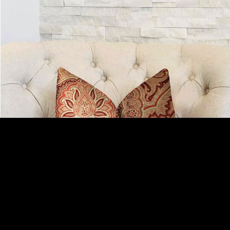 Bring this eye-catching, edgy and sumptuous statement piece to your room. Add a great conversational piece in the house with this plutus enchanted prairie red and beige luxury throw pillow. The fabric of this luxury pillow is a blend of Cotton.*Colors: Red and Beige*Fabric Origin: United States. Pillows are Handmade in USA*Double Sided pillow*Invisible zipper enclosure for a tailored look*All seams are over-locked and stitched for a professional finish*Pattern placement may vary slightly*Pillow measurements are seam to seam from the inside*Pillows include *Made in USA* Hypoallergenic Down Alternative Polyfill Insert*Dry Clean recommended*Fabric Content: 100% Cotton*Pattern: Paisley*Flammability: CAL 117-2013, NFPA 260, UFAC IIngredients: Hypoallergenic Down Alternative PolyfillSize: Double sided 12″ x 20″Color: Red and BeigeMade In: United States