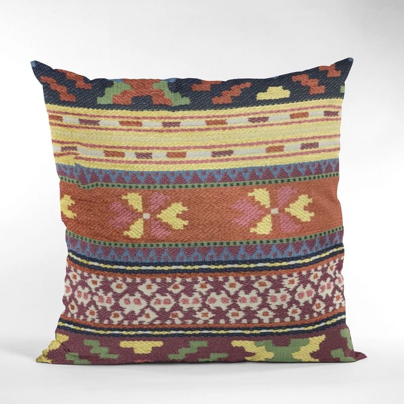 Luxury, trendy and definitely a conversation starter. Made from the finest materials to dazzle your eyes and feed your senses. Give your guests and vistors something to think about! Insert included. plutus multi-color unique lanes border luxury throw pillow. The fabric of this luxury pillow is a blend of Rayon, Polyester, Cotton.*Colors: Multi-Color*Fabric Origin: United States. Pillows are Handmade in USA*Double Sided pillow*Invisible zipper enclosure for a tailored look*All seams are over-locked and stitched for a professional finish*Pattern placement may vary slightly*Pillow measurements are seam to seam from the inside*Pillows include *Made in USA* Hypoallergenic Down Alternative Polyfill Insert*Dry Clean recommended*Fabric Content: 41% Rayon / 36% Polyester / 23% Cotton*Pattern: Border*Flammability: CAL 117-2013, NFPA 260, UFAC I*Cleaning Code: Spot Clean, and Dry Clean only*Due to monitor differences, actual colors may vary slightly from what appears online.