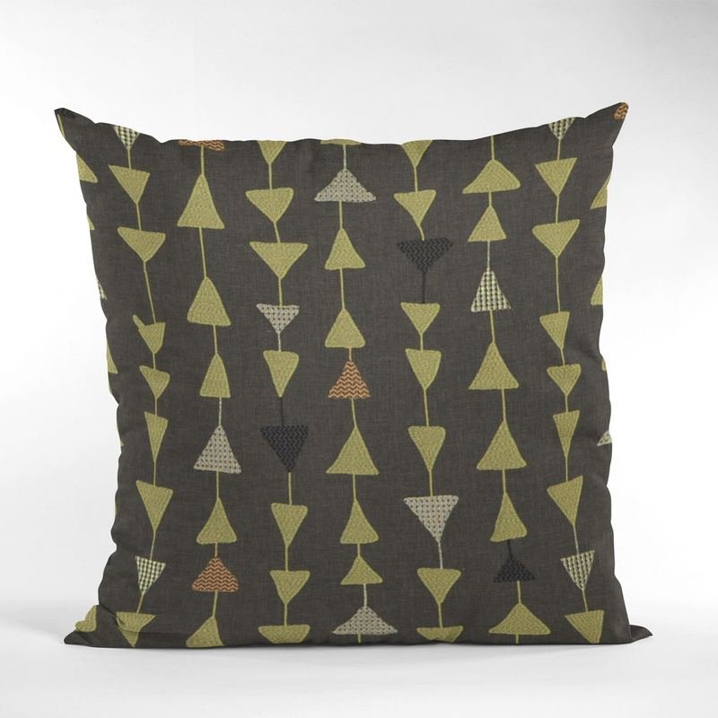 Luxury, trendy and definitely a conversation starter. Made from the finest materials to dazzle your eyes and feed your senses. Give your guests and vistors something to think about! Insert included. plutus river rock manti embroydery, some of the triangles have metalic threads luxury throw pillow. The fabric of this luxury pillow is a blend of Poly, Cotton, Viscose, Polyesteer.*Colors: River Rock*Fabric Origin: India. Pillows are Handmade in USA*Double Sided pillow*Invisible zipper enclosure for a tailored look*All seams are over-locked and stitched for a professional finish*Pattern placement may vary slightly*Pillow measurements are seam to seam from the inside*Pillows include *Made in USA* Hypoallergenic Down Alternative Polyfill Insert*Dry Clean recommended*Fabric Content: Ground: 52% Poly, 48% Cotton Embroydery: 81% Viscose, 19% Polyesteer*Pattern: Embroydery, Some Of The Triangles Have Metalic Threads*Flammability: CAL 117-2013, NFPA 260, UFAC I*Cleaning Code: Spot Clean, and Dry Clean only*Due to monitor differences, actual colors may vary slightly from what appears online. Ingredients: Hypoallergenic Down Alternative PolyfillSize: Double sided 26″ x 26″Color: River RockMade In: United States