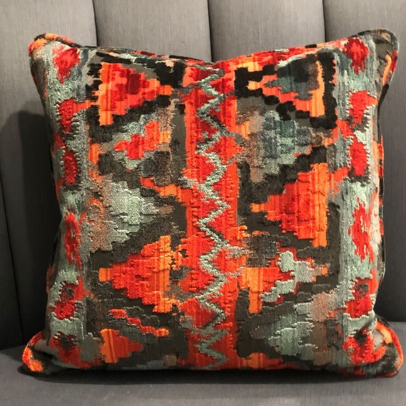 Elegance and Luxury is an understatement for this urbane classy decorative pillow. Bring sophistication and cheer to any room with this plutus sachi love red, blue, orange luxury throw pillow. The fabric of this luxury pillow is a blend of Viscose, Cotton, Polyester, Viscose.*Colors: Red, Blue, Orange*Fabric Origin: Belgium. Pillows are Handmade in USA*Double Sided pillow*Invisible zipper enclosure for a tailored look*All seams are over-locked and stitched for a professional finish* Edging: Piping edge*Pattern placement may vary slightly*Pillow measurements are seam to seam from the inside*Pillows include *Made in USA* Hypoallergenic Down Alternative Polyfill Insert*Dry Clean recommended*Fabric Content: 86% Viscose, 7% Cotton, 7% Polyester, 100% Viscose*Pattern: Ikat*Flammability: CAL 117-2013, NFPA 260, UFAC I