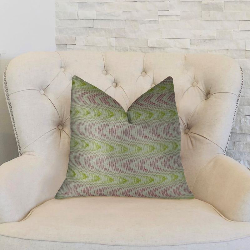 Elegance and Luxury is an understatement for this urbane classy decorative pillow. Bring sophistication and cheer to any room with this plutus sound waves beet citrine ivory handmade luxury pillow. The fabric is a blend of Cotton and Polyester.Pillows are Handmade in USA*Color: Beet Citrine Ivory*Double Sided pillow*Invisible zipper enclosure for a tailored look*All seams are over-locked and stitched for a professional finish*Pattern placement may vary slightly*Pillow measurements are seam to seam from the inside*Pillows include *Made in USA* Hypoallergenic Down Alternative Polyfill Insert*Dry Clean recommended*Fabric Content: 83%Cotton/17%Polyester*Pattern: geometricIngredients: Hypoallergenic Down Alternative PolyfillSize: Double Sided 16″ x 16″Color: Beet Citrine IvoryMade In: United States