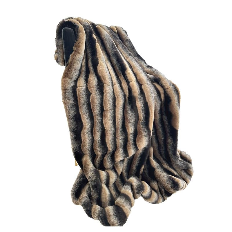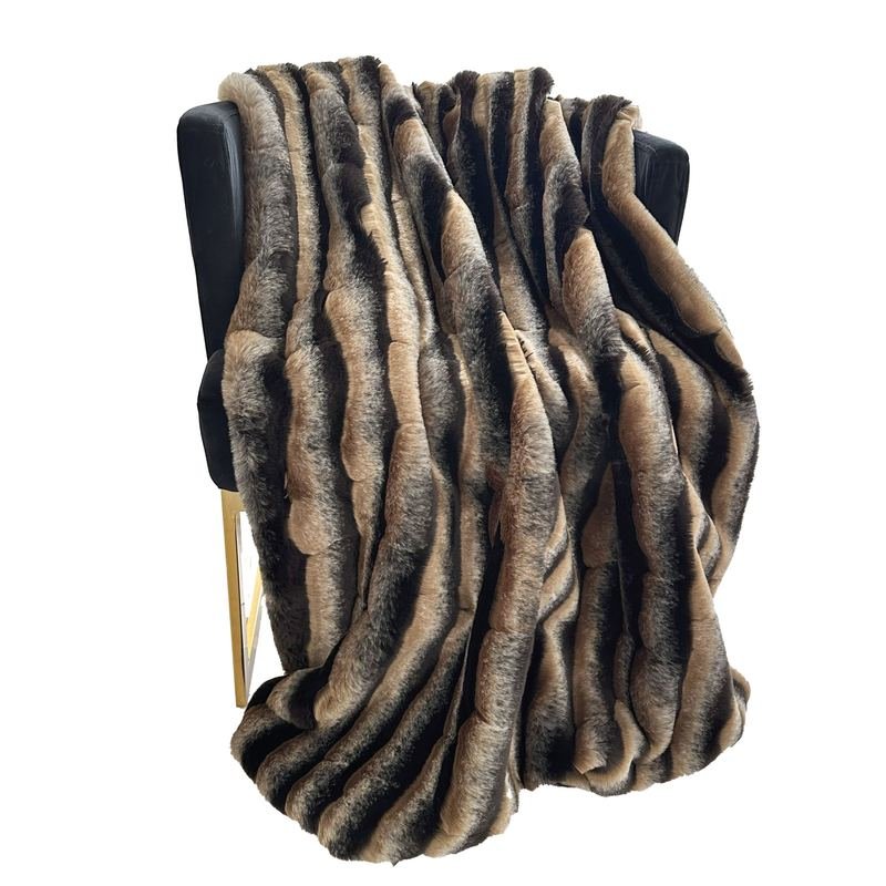 If eyes are the windows to the soul, then this decorative throw/blanket is the windows to the design beauty of one’s dream. Add a special touch of texture and comfort to your living space with this designer taupe and black wild wolf plush handmade luxury faux fur throw blanket. Create and enjoy the real look without harming animals!*Handmade In USA*Color: Taupe and Black*Fabric Content: 100% Acrylic*Reversible*Back Side: Matching Solid ColorIngredients: Size: Throw 36W x 60LColor: Wild WolfMade In: United States