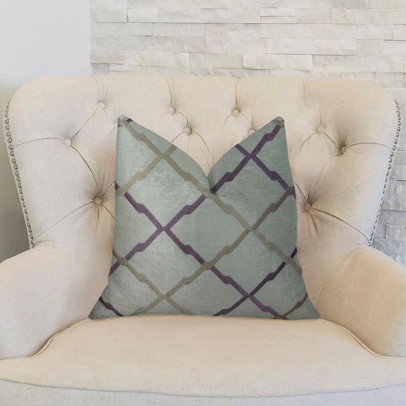 This chic and classy decorative throw pillow is the perfect way to add a flourish of color to your space. The stunning design makes this plutus valencia white purple and taupe handmade luxury pillow. The fabric is a blend of Viscose and Linen.Pillows are Handmade in USA*Color: White Purple and Taupe*Double Sided pillow*Invisible zipper enclosure for a tailored look*All seams are over-locked and stitched for a professional finish*Pattern placement may vary slightly*Pillow measurements are seam to seam from the inside*Pillows include *Made in USA* Hypoallergenic Down Alternative Polyfill Insert*Dry Clean recommended*Fabric Content: 79%Viscose/21%Linen*Pattern: geometricIngredients: Hypoallergenic Down Alternative PolyfillSize: Double sided 20″ x 26″ StandardColor: White, Purple, TaupeMade In: United States