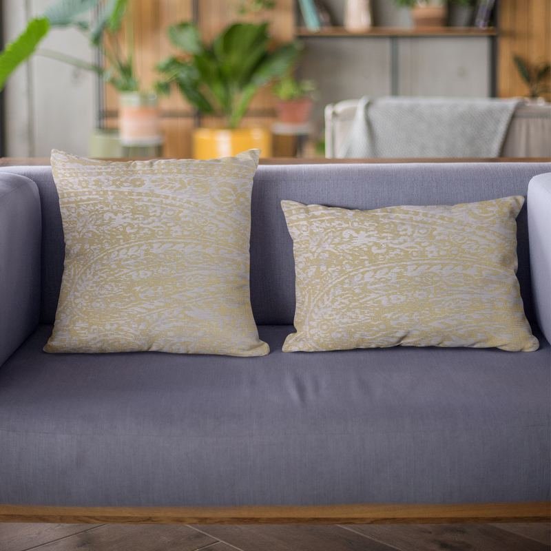 Luxury, trendy and definitely a conversation starter. Made from the finest materials to dazzle your eyes and feed your senses. Give your guests and vistors something to think about! Insert included. plutus yellow golden leaf jacquard luxury throw pillow. The fabric of this luxury pillow is a blend of Cotton, Polyester.*Colors: Yellow*Fabric Origin: india. Pillows are Handmade in USA*Double Sided pillow*Invisible zipper enclosure for a tailored look*All seams are over-locked and stitched for a professional finish*Pattern placement may vary slightly*Pillow measurements are seam to seam from the inside*Pillows include *Made in USA* Hypoallergenic Down Alternative Polyfill Insert*Dry Clean recommended*Fabric Content: 60% Cotton / 40% Polyester*Pattern: Jacquard*Flammability: CAL 117-2013, NFPA 260, UFAC I*Cleaning Code: Spot Clean, and Dry Clean only*Due to monitor differences, actual colors may vary slightly from what appears online. Ingredients: Hypoallergenic Down Alternative PolyfillSize: Double sided 12″ x 20″Color: YellowMade In: United States