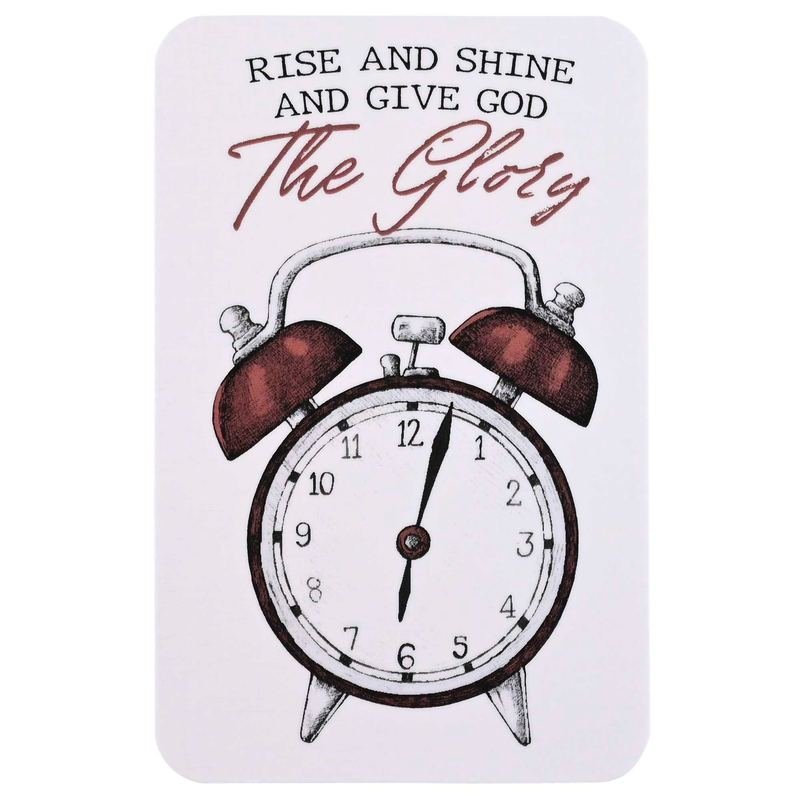 Pocket Card Features An Alarm Clock With A Top Border Of Words: Rise And Shine And Give God The Glory. The White Back Contains To And From Spaces For Personalization. Each Pocketcard Measures 2-1/2 X 3-7/8 And Is Available In Packs Of 12. Made In The USA.Ingredients: Size: Color: WHT/BLKMade In: United States