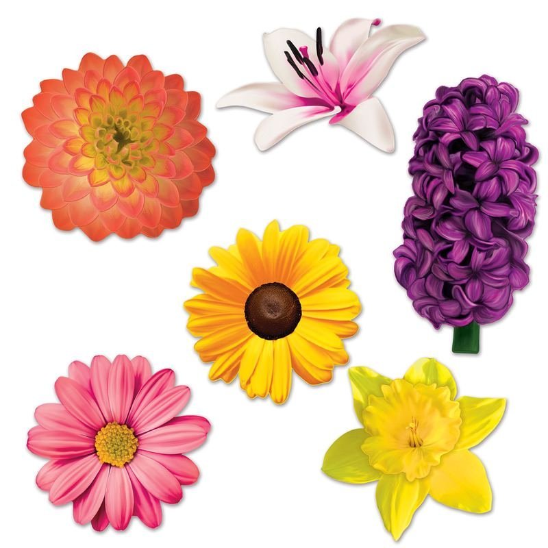 Flower Cutouts, 11″-16.75″, (6 per package), (printed 2 sides with different colors), (Sold in packs of 12)Ingredients: Size: Color: Made In: United States
