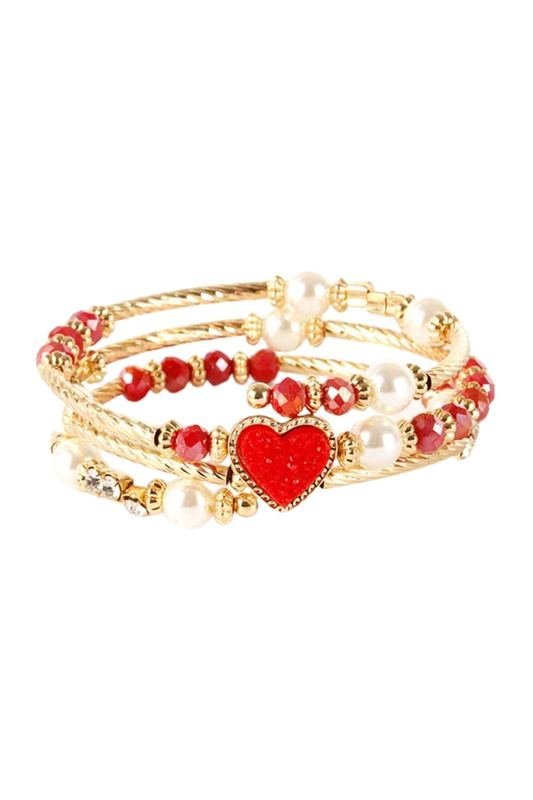 Red Heart Druzy and Pearl Wrap Gold Bracelet.