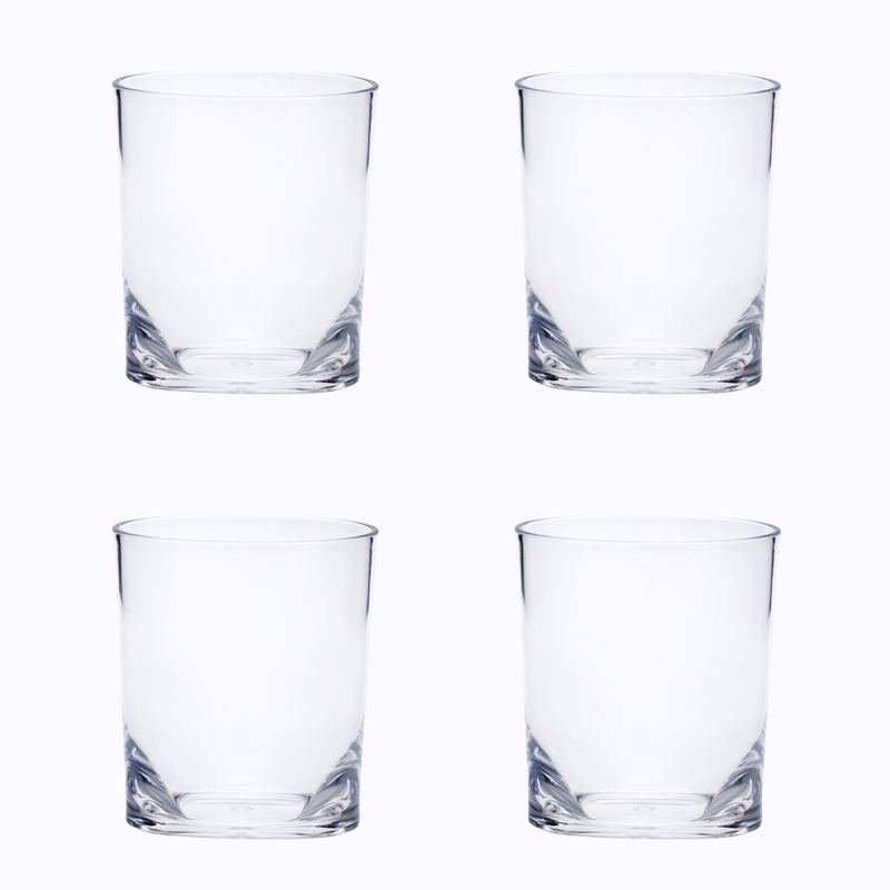 Set of Four Clear Tritan Plastic Stemless Whiskey Glass