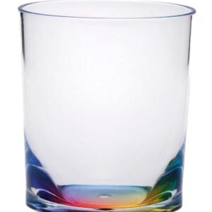 Enjoy your favorite whiskey to the fullest with this top shelf set of four rainbow geometric acrylic stemless whiskey glass. Elevate any occasion with a set of stunning stemware that is as functional as it is beautiful. Add an air of casual elegance with the fresh and modern design of a stemless glass. Includes a decorative clear rim to enhance the look and elegance of the glass. Beautifully machine embossed to give your glassware a bit of design, character, and dimension. Bring a pop of personality to your kitchen or dining room with this geometric pattern. The texture on this surface not only looks great but feels cool in your hand. Every drink deserves the perfect glass, and so do you. 3.93-inch H x 3.5-inch W x 3.5-inch D