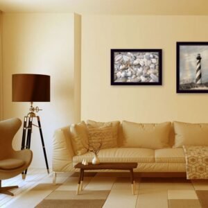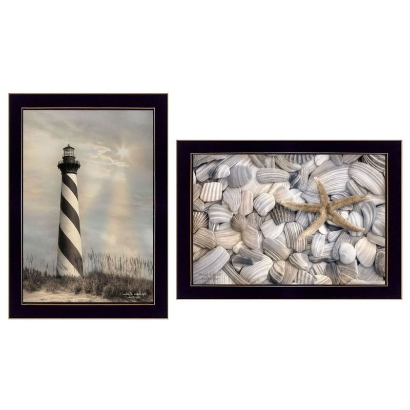 The set of two cape hatteras lighthouse and sea shells 1 black framed print wall art is the perfect decorative accessory for your home. This print is a visual artistic expression that allows you to decorate your space in style. Reproduced for you on paper, this hanging decorative accent will be a trendy and fashionable way to dress your walls. Adding this hanging wall art to your space to make your room feel more finished and attractive. Instantly liven up your space with this art that brings color and dimension to your walls. 14-inch H x 20-inch W x 1-inch DIngredients: Size: Color: Made In: United States