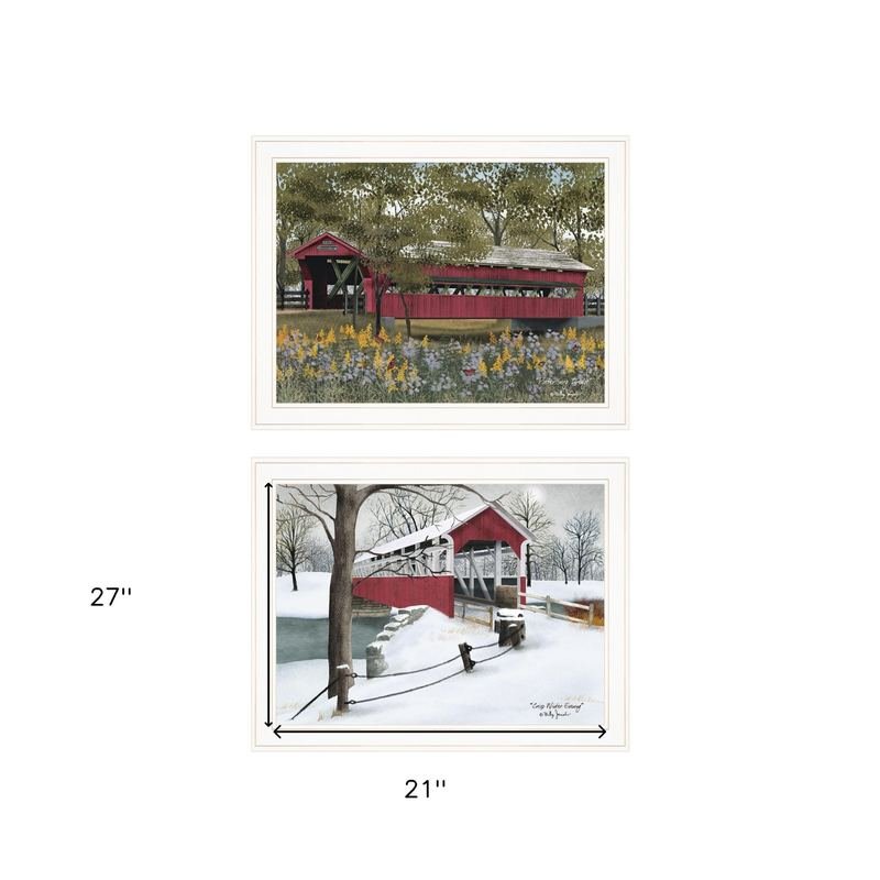 This set of two covered bridge collection iii white framed print wall art will add a beautiful decorative accent to your decor. This print is a visual artistic expression that allows you to decorate your space in style. Reproduced for you on paper, this hanging decorative accent will be a trendy and fashionable way to dress your walls. Hang on your wall to add some up to date fashion and decoration. Utilize this opportunity to create a focal point in the room with this fabulous wall decor option. 21-inch H x 27-inch W x 1-inch DIngredients: Color: Size: QTY: 1.0