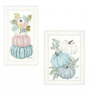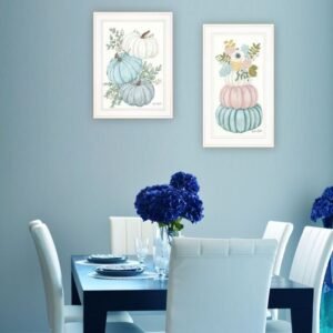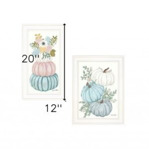 Unique and decorative, this set of two floral pumpkins 2 white framed print wall art will leave a lasting impression. This print is a visual artistic expression that allows you to decorate your space in style. Reproduced for you on wood, this hanging decorative accent will be a trendy and fashionable way to dress your walls in a rustic and modern farmhouse vibe. Hang on your wall to add some up to date fashion and decoration. Utilize this opportunity to create a focal point in the room with this fabulous wall decor option. 20-inch H x 12-inch W x 1-inch D
