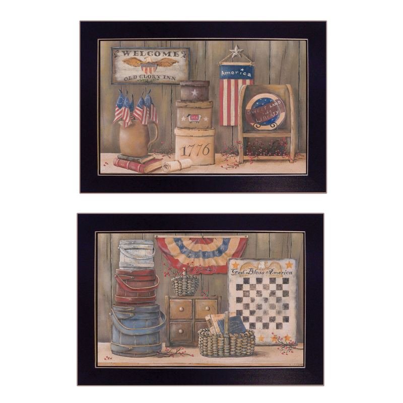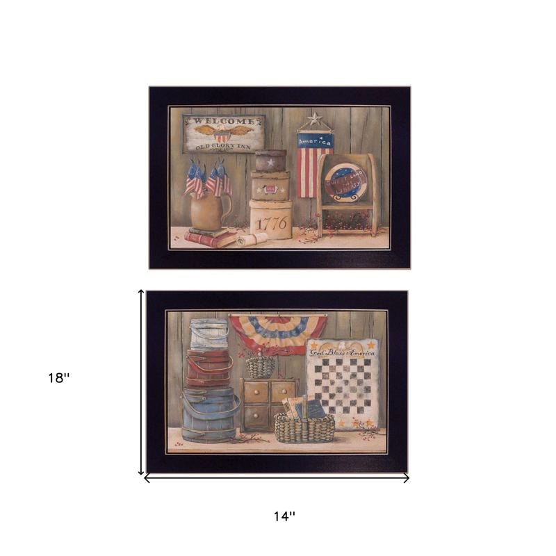 Add an air of fashion to your room and rejuvenate the space with this set of two god bless or sweet land 3 black framed print wall art. This print is a visual artistic expression that allows you to decorate your space in style. Reproduced for you on paper, this hanging decorative accent will be a trendy and fashionable way to dress your walls. Hang on your wall to add some up to date fashion and decoration. Utilize this opportunity to create a focal point in the room with this fabulous wall decor option. 14-inch H x 18-inch W x 1-inch D