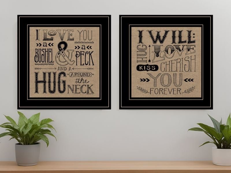 Unique and decorative, this set of two hugs or forever 2 black framed print wall art will leave a lasting impression. This print is a visual artistic expression that allows you to decorate your space in style. Reproduced for you on paper, this hanging decorative accent will be a trendy and fashionable way to dress your walls. Adding this hanging wall art to your space to make your room feel more finished and attractive. Utilize this opportunity to create a focal point in the room with this fabulous wall decor option. 15-inch H x 15-inch W x 1-inch DIngredients: Size: Color: Made In: United States