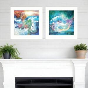 Add an air of fashion to your room and rejuvenate the space with this set of two mermaids 1 white framed print wall art. This print is a visual artistic expression that allows you to decorate your space in style. Reproduced for you on paper, this hanging decorative accent will be a trendy and fashionable way to dress your walls. Adding this hanging wall art to your space to make your room feel more finished and attractive. Instantly liven up your space with this art that brings color and dimension to your walls. 15-inch H x 15-inch W x 1-inch D