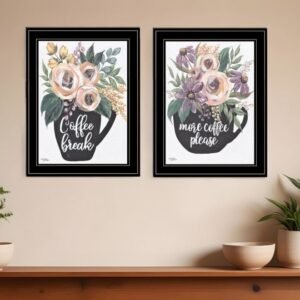 Unique and decorative, this set of two more coffee please or coffee break black framed print kitchen wall art will leave a lasting impression. This print is a visual artistic expression that allows you to decorate your space in style. Reproduced for you on wood, this hanging decorative accent will be a trendy and fashionable way to dress your walls in a rustic and modern farmhouse vibe. Hang on your wall to add some up to date fashion and decoration. Instantly liven up your space with this art that brings color and dimension to your walls. 19-inch H x 31-inch W x 1-inch D