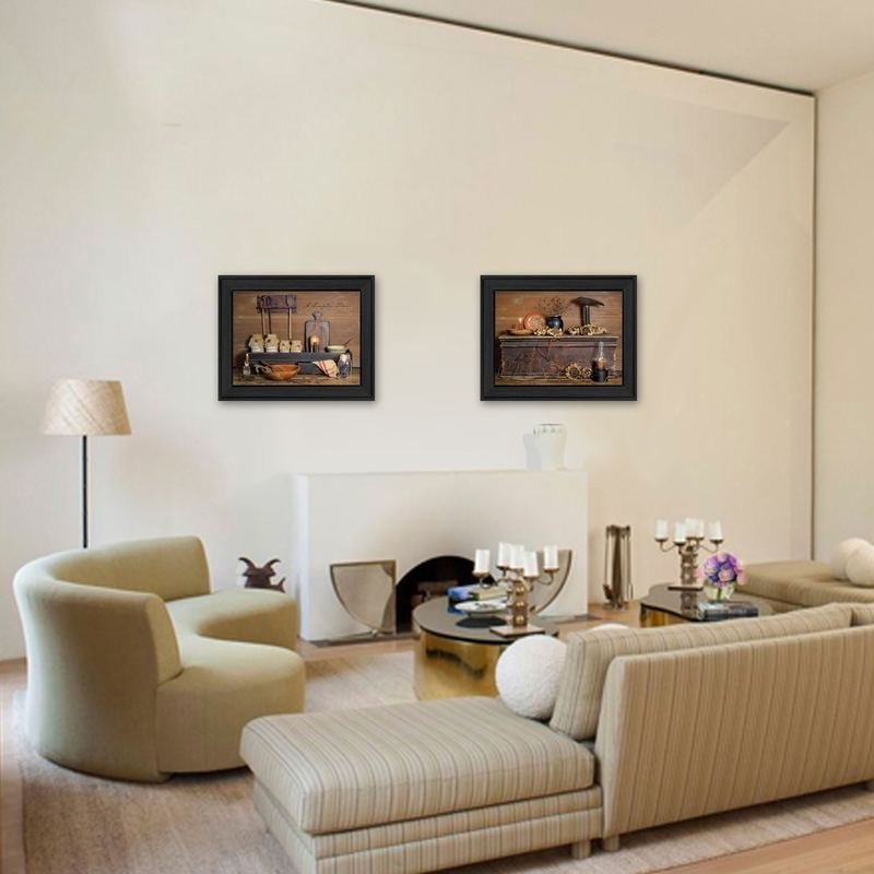 This set of two rustic black framed print wall art will add a beautiful decorative accent to your decor. This print is a visual artistic expression that allows you to decorate your space in style. Reproduced for you on paper, this hanging decorative accent will be a trendy and fashionable way to dress your walls. Hang on your wall to add some up to date fashion and decoration. Instantly liven up your space with this art that brings color and dimension to your walls. 14-inch H x 36-inch W x 1.5-inch D