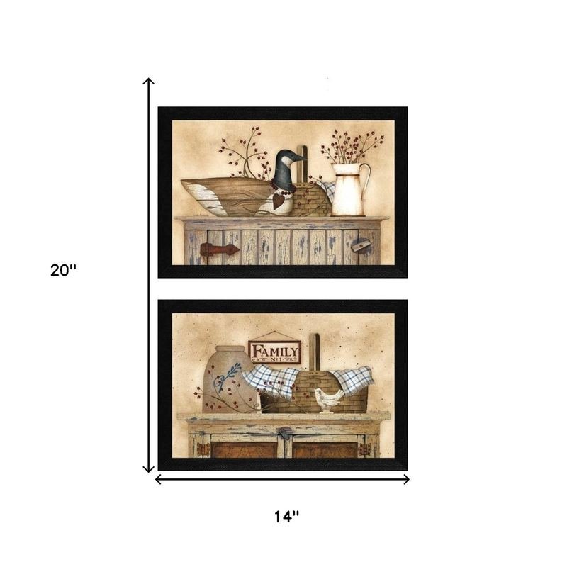 Bring some sizzle to your space with this eye-catching set of two rustic still life black framed print wall art. This print is a visual artistic expression that allows you to decorate your space in style. Reproduced for you on paper, this hanging decorative accent will be a trendy and fashionable way to dress your walls. Hang on your wall to add some up to date fashion and decoration. Utilize this opportunity to create a focal point in the room with this fabulous wall decor option. 14-inch H x 20-inch W x 1-inch DIngredients: Size: Color: Made In: United States