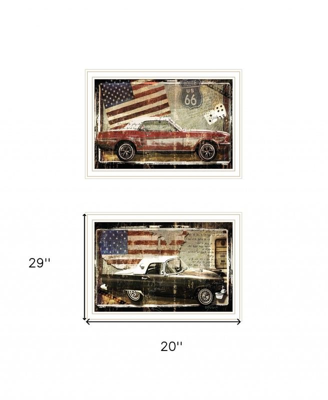 The set of two vintage classics 2 white framed print wall art is the perfect decorative accessory for your home. This transportation inspired wall art features a car/van icon and will bring a refreshing look and perspective to your walls. This print is a visual artistic expression that allows you to decorate your space in style. Reproduced for you on wood, this hanging decorative accent will be a trendy and fashionable way to dress your walls in a rustic and modern farmhouse vibe. Adding this hanging wall art to your space to make your room feel more finished and attractive. Instantly liven up your space with this art that brings color and dimension to your walls. 29-inch H x 20-inch W x 1-inch DIngredients: Size: Color: Made In: United States