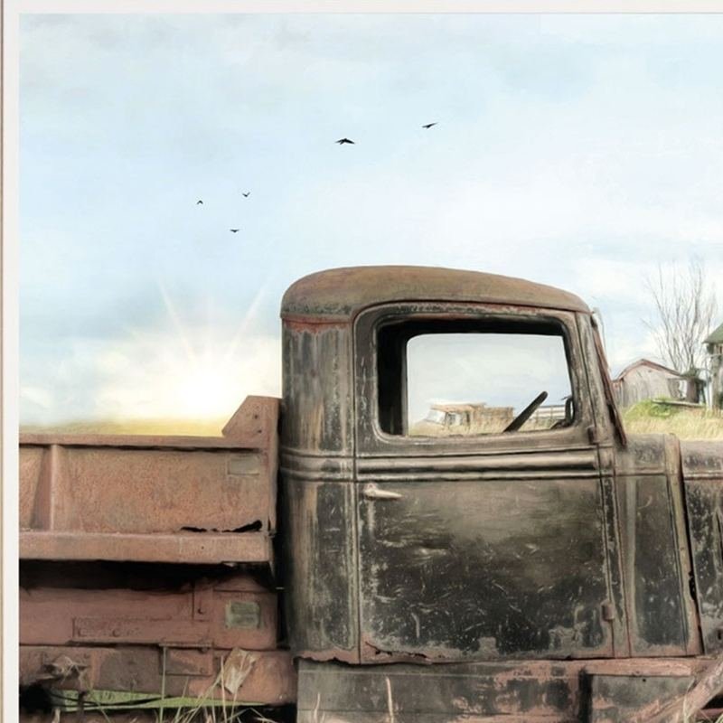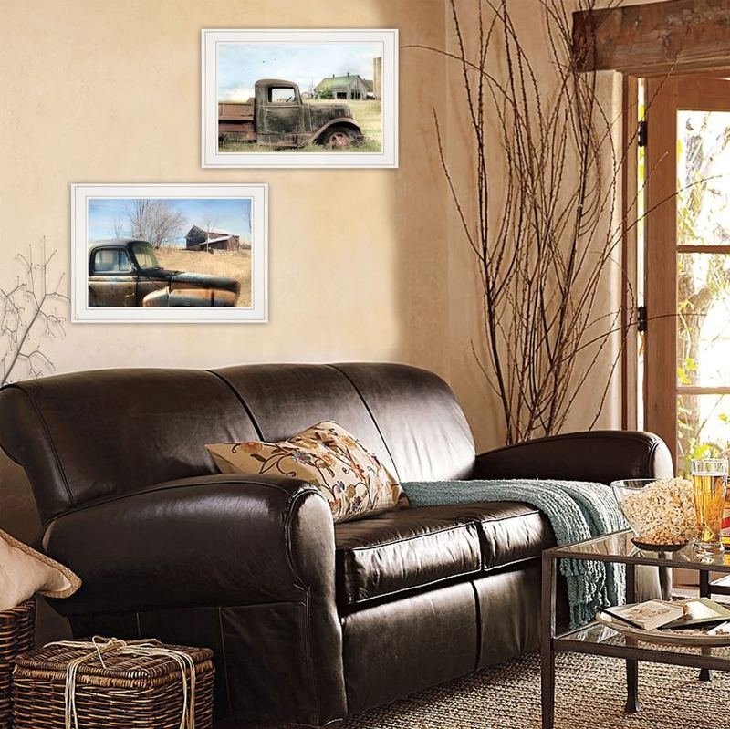Add an air of fashion to your room and rejuvenate the space with this set of two vintage farm trucks 1 white framed print wall art. This transportation inspired wall art features a farm truck icon and will bring a refreshing look and perspective to your walls. This print is a visual artistic expression that allows you to decorate your space in style. Reproduced for you on paper, this hanging decorative accent will be a trendy and fashionable way to dress your walls. Hang on your wall to add some up to date fashion and decoration. Utilize this opportunity to create a focal point in the room with this fabulous wall decor option. 15-inch H x 21-inch W x 1-inch DIngredients: Size: Color: Made In: United States