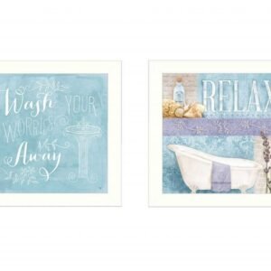 Unique and decorative, this set of two wash white framed print bathroom wall art will leave a lasting impression. This print is a visual artistic expression that allows you to decorate your space in style. Reproduced for you on paper, this hanging decorative accent will be a trendy and fashionable way to dress your walls. Hang on your wall to add some up to date fashion and decoration. Instantly liven up your space with this art that brings color and dimension to your walls. 14-inch H x 28-inch W x 1.5-inch DIngredients: Size: Color: Made In: United States