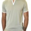 Step-up your day or evening with this stylish, breathable short sleeve crew collar shirt in taupe with dark brown SpearPoint. This high quality shirt combines comfort with long lasting durability and is made with super soft, stretch, and quick dry fabric for a superior look and feel. The fabric is wrinkle resistant so the shirt comes out of the dryer ready to wear. This is SpearPoint stylingbold, not loud!
