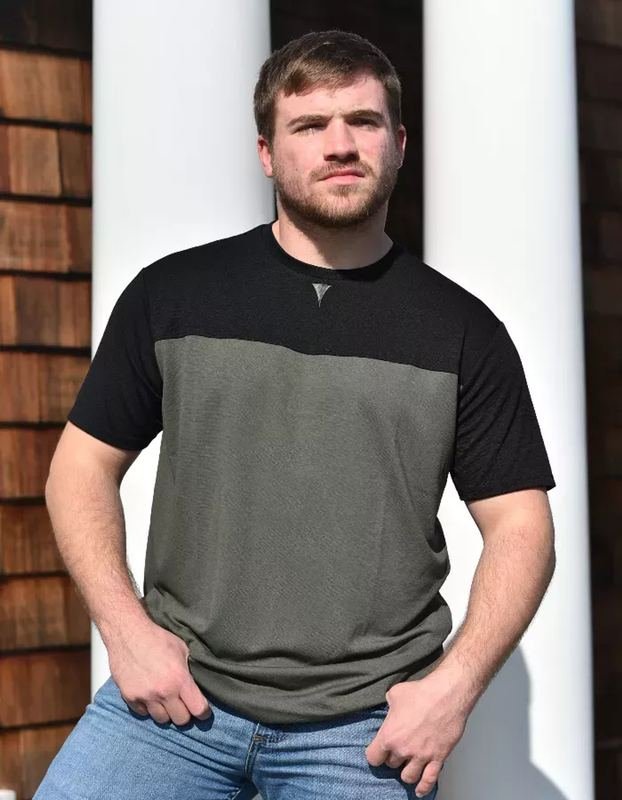Step-up your day or evening with this stylish, breathable short sleeve crew collar shirt in dark green with black shoulder panel and sleeves, dark green SpearPoint. This high quality shirt combines comfort with long lasting durability and is made with super soft, stretch, and quick dry fabric for a superior look and feel. The fabric is wrinkle resistant so the shirt comes out of the dryer ready to wear. This is SpearPoint stylingbold, not loud!