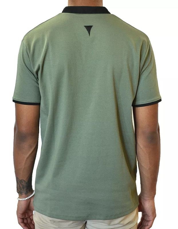 Step-up your day or evening with this stylish, cotton blend short sleeve banded collar interlock knit shirt in dark green with a black collar and sleeve ends. This high quality shirt combines comfort with long lasting durability and is made with super soft, stretch fabric for a superior look and feel. The fabric is wrinkle resistant so the shirt comes out of the dryer ready to wear. This is SpearPoint stylingbold, not loud!