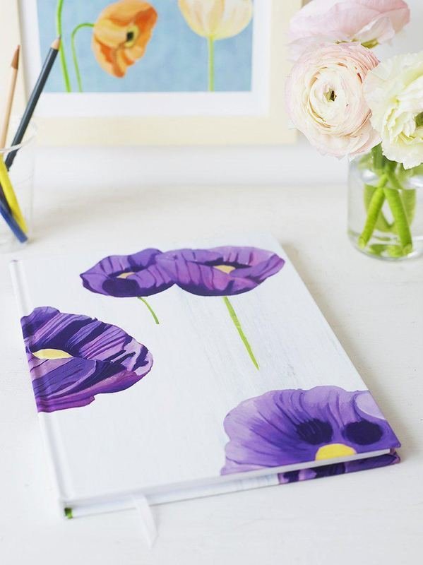 8″ x 10″ hardcover sketchbook with 100 blank pages and a white grosgrain bookmark ribbon.