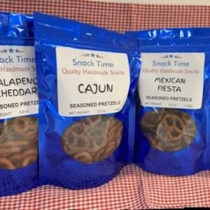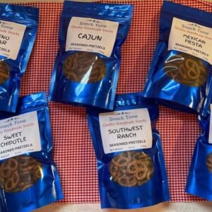 Cherry Orchard Foods Snack Time Seasoned Pretzels. Our Snack Time Seasoned Pretzels are handcrafted from premium quality pretzels and our handmade all-natural seasoning blends to give you a delicious superior snack that will soon become your go-to snack. Check out our lineup of 6 amazing flavors! If adding Seasoned Pretzels to your order, please allow 1-2 extra days for processing your order. These are made fresh in small batches and need to sit and soak in all the flavor for 24 hours.