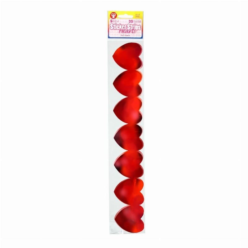 Sticker Strips – 35 per pack – 2in. Metallic Hearts, 5 Strips of Red HeartsIngredients: Size: 2inColor: Made In: United States