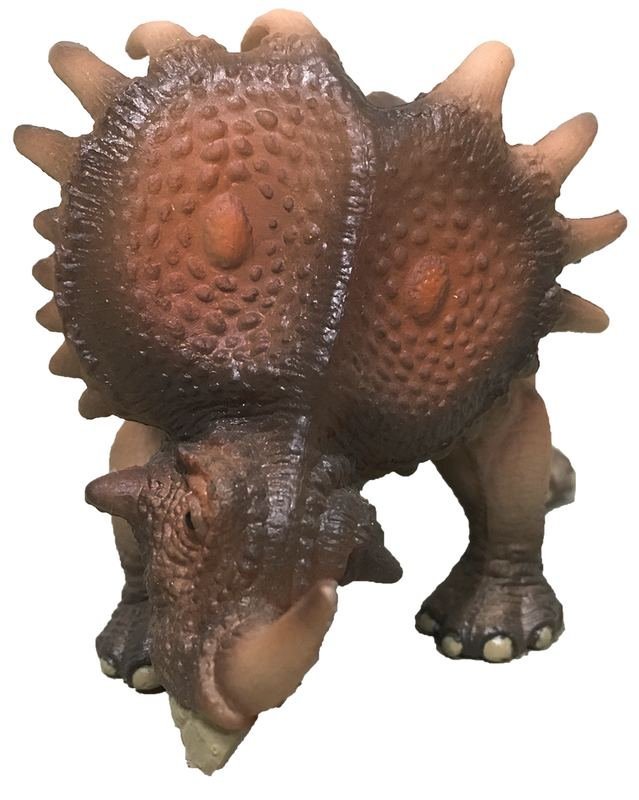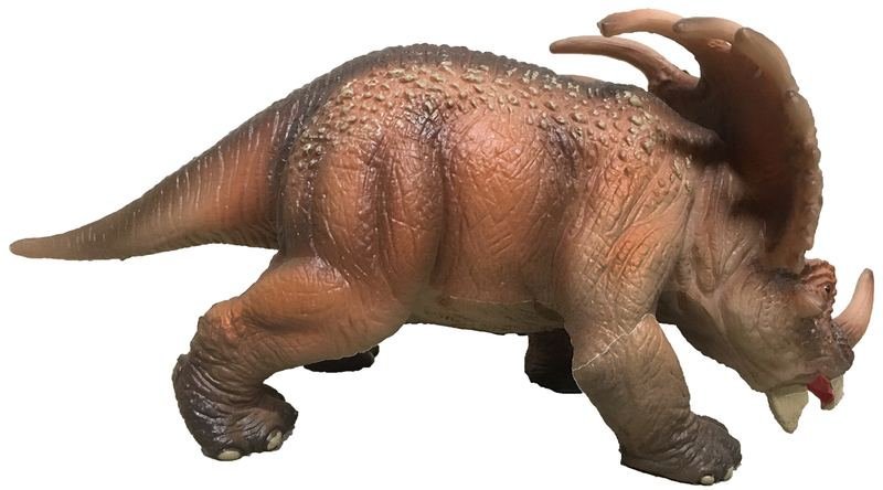 This Styracosaur figurine is painted with great detail, highlighting the scales and coloration of the dinosaur’s skin. Arms and jaw are moveable.