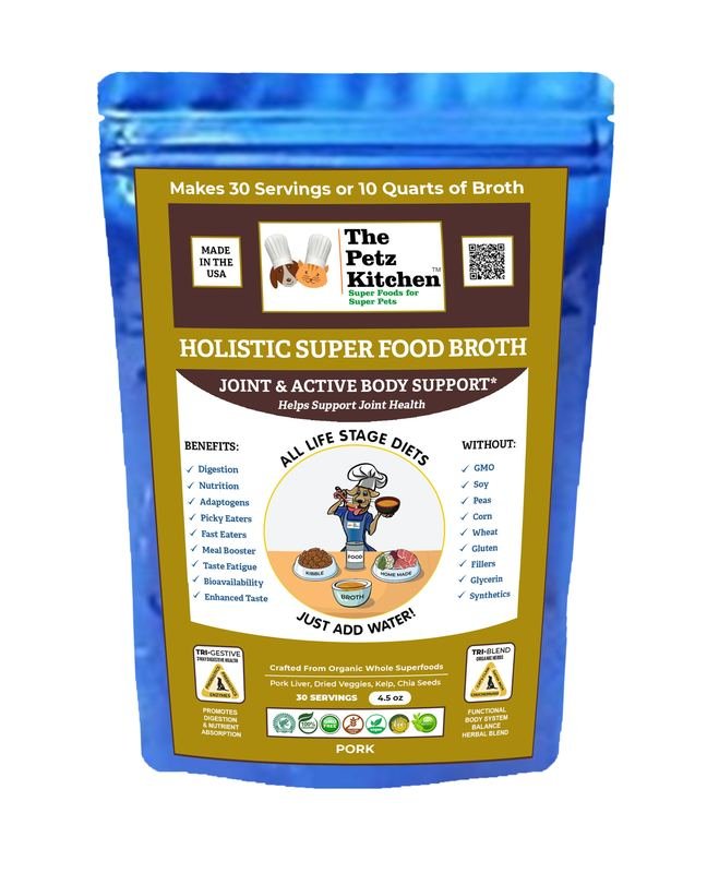 SUPER FOOD BROTH JOINT and ACTIVE BODY SUPPORT* THE PETZ KITCHEN FOR DOGS AND CATS*