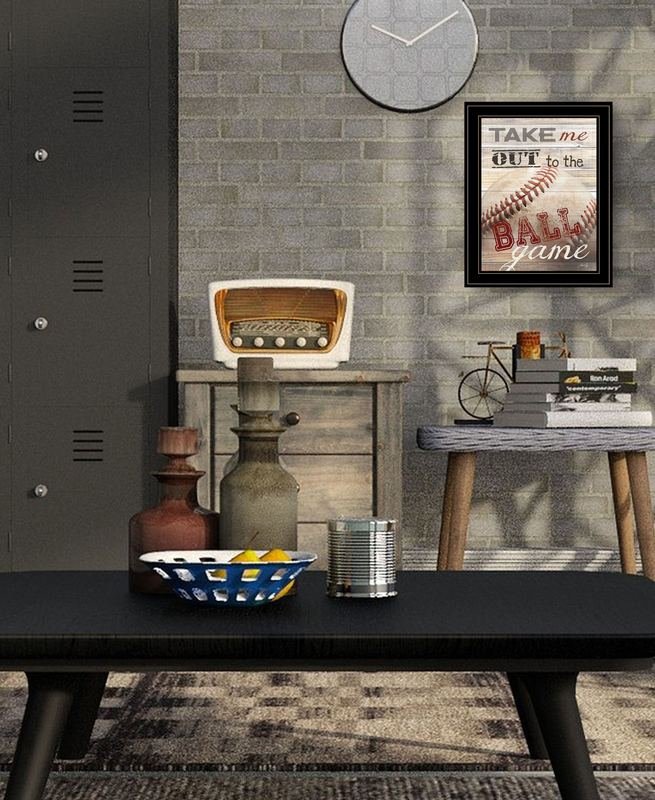 This take me out to the ball game 2 black framed print wall art will add a beautiful decorative accent to your decor. This print is a visual artistic expression that allows you to decorate your space in style. Reproduced for you on wood, this hanging decorative accent will be a trendy and fashionable way to dress your walls in a rustic and modern farmhouse vibe. Adding this hanging wall art to your space to make your room feel more finished and attractive. Instantly liven up your space with this art that brings color and dimension to your walls. 19-inch H x 15-inch W x 1-inch D