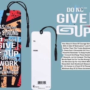 How About A Dose Of Courage Served With A Side Of Motivation? Look No Further Than This Trusty Bookmark! Check Out 2 Chronicles 15:7 For A Powerful Reminder To Keep Pushing Forward And Reap Those Sweet Rewards. Let Us Conquer The Day! Words Read: As For You Be Strong And Do Not Give Up For Your Work Will Be Rewarded. Each Bookmark Measures 2 X 6 Comes In A Pack Of 12 Pieces, Minimum Buy Of 12 Piece Increments.Ingredients: Size: Color: MULTIMade In: United States