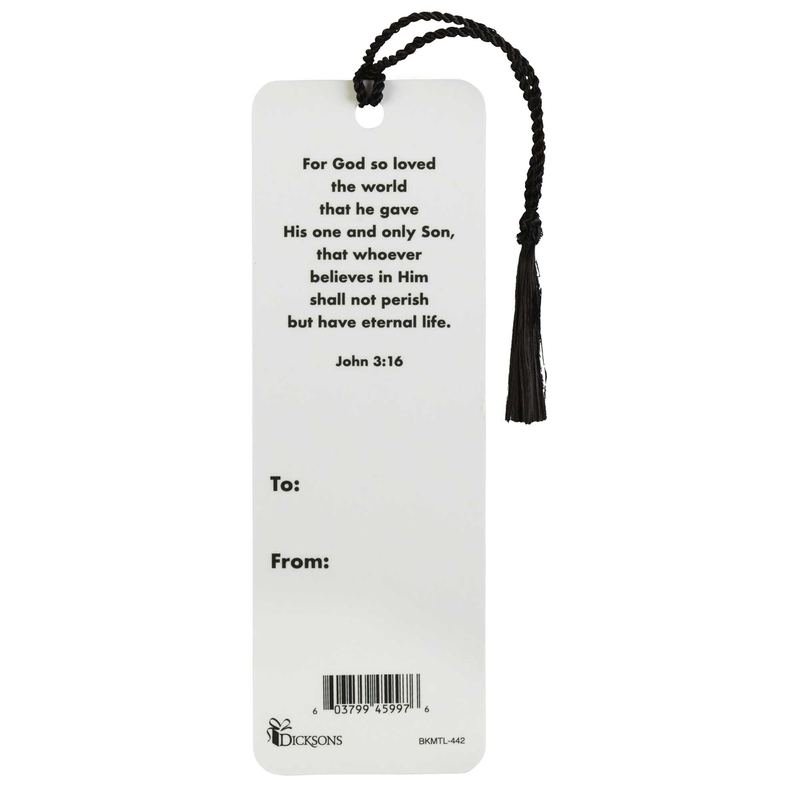 This 2×6 Bookmark, Topped With A Coordinating Tassel Cord, Features The Life Of Christ In Silhouette Images. To And From Spaces On Back For Personalization.Ingredients: Size: Color: Made In: United States