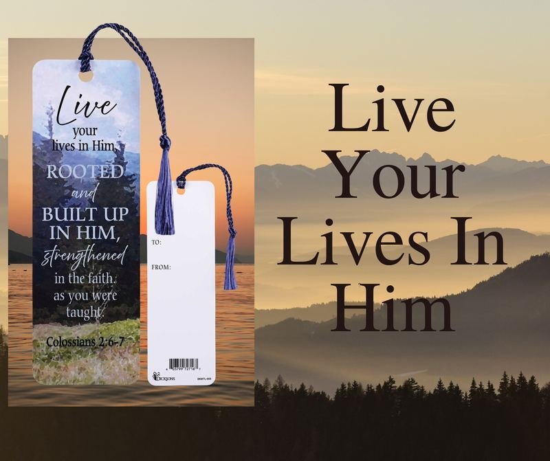 This Navy-Tasseled Bookmark Features A Nature Background Underneath Colossians 2:6-7: Live Your Lives In Him, Rooted And Built Up In Him, Strengthened In The Faith, As You Were Taught. The White Back Displays To And From Spaces For Personalization. Each Bookmark Measures 2 X 6 And Comes In A Pack Of 12 Pieces. Made In The USA. Packed In A Polybag.Ingredients: Size: Color: BLU/GRNMade In: United States