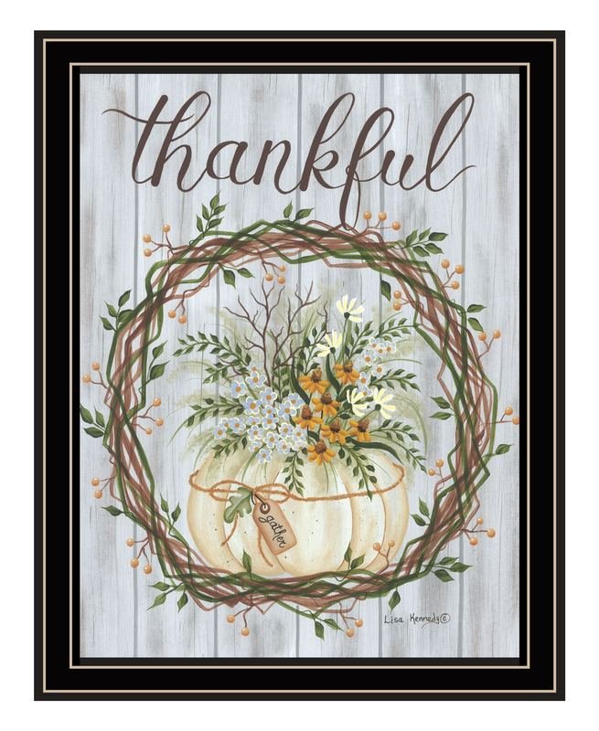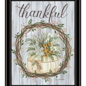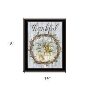 The thankful wreath black framed print wall art is the perfect decorative accessory for your home. This print is a visual artistic expression that allows you to decorate your space in style. Reproduced for you on wood, this hanging decorative accent will be a trendy and fashionable way to dress your walls in a rustic and modern farmhouse vibe. Adding this hanging wall art to your space to make your room feel more finished and attractive. Utilize this opportunity to create a focal point in the room with this fabulous wall decor option. 18-inch H x 14-inch W x 1-inch DIngredients: Color: Size: QTY: 1.0