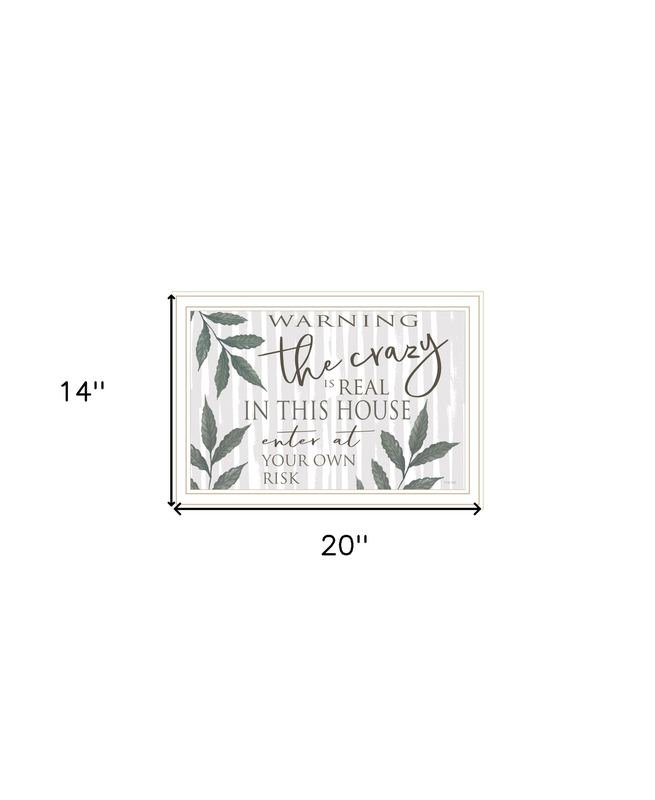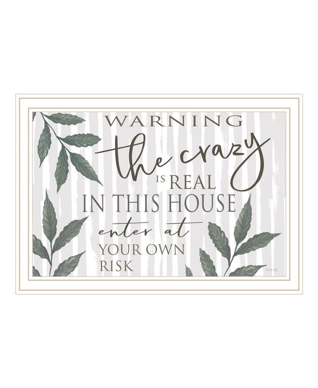 Add an air of fashion to your room and rejuvenate the space with this the crazy is real white framed print wall art. This print is a visual artistic expression that allows you to decorate your space in style. Reproduced for you on wood, this hanging decorative accent will be a trendy and fashionable way to dress your walls in a rustic and modern farmhouse vibe. Hang on your wall to add some up to date fashion and decoration. Instantly liven up your space with this art that brings color and dimension to your walls. 14-inch H x 20-inch W x 1-inch DIngredients: Size: Color: Made In: United States