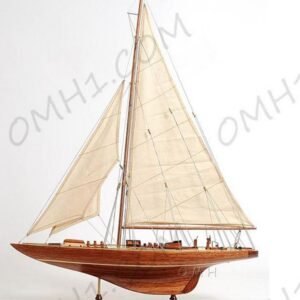 The Endeavour was the most impressive British sailboat to ever race in the America’s Cup World Series. Built for speed as well as beauty, the Endeavour was created in 1934 by Thomas Sopwith, the undisputed leader of the British aircraft industry. A magnificent model to be displayed as a home or office decor. Master craftsmen handcraft these highly detailed wood models from scratch using historical photographs, drawings, and original plan. They are built to scale with high-grade wood such as western red cedar, rosewood, and mahogany. They are 100% hand built individually using plank-on-frame construction method and are similar to the building of actual ships. Each model requires hundreds of hours to finish and must go through a demanding quality control process before leaving the workshop. The Endeavour model features beautiful hand stitched sails that extends all the way to the masthead. The wooden pulleys keep the complicated rigging tighten. The deck is made out of wood planks that are carefully pieced symmetrically for a beautiful finish. An elongated boom flows from the mast to the stern. There is a wooden cabin located in the middle of the deck. You can also spot a companionway that would lead to the bottom hull. Various wooden winches are placed around the deck to wind up or let out riggings when needed. The model is secured tightly on a solid wood base with a brass nameplate. The mast and sails are folded down for easy packaging and shipping. It’ll make a perfect gift for home or office decorator, boat enthusiast, or passionate collector.
