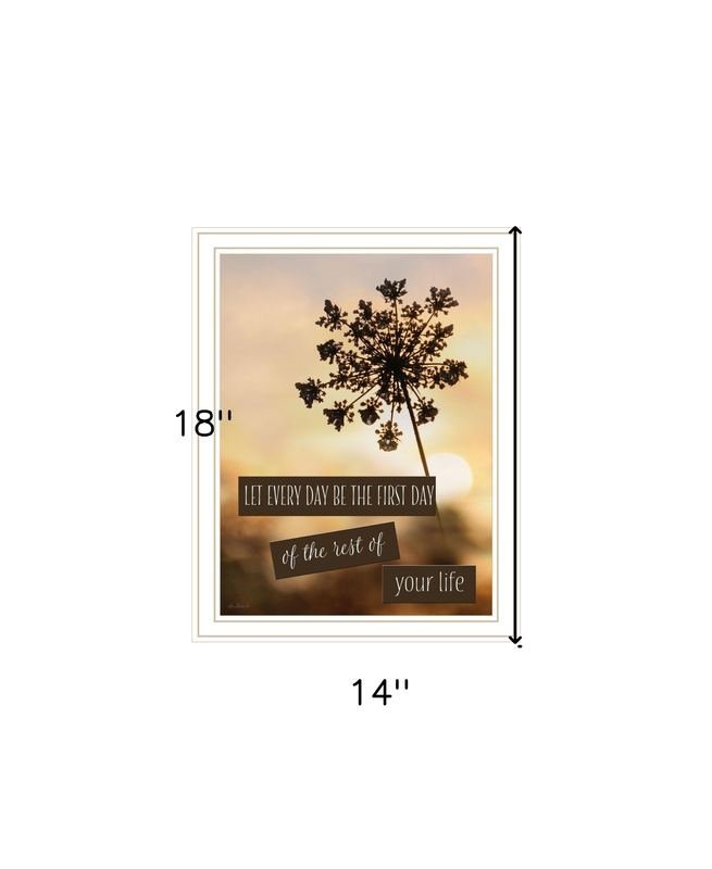 Add an air of fashion to your room and rejuvenate the space with this the first day white framed print wall art. This print is a visual artistic expression that allows you to decorate your space in style. Reproduced for you on wood, this hanging decorative accent will be a trendy and fashionable way to dress your walls in a rustic and modern farmhouse vibe. Adding this hanging wall art to your space to make your room feel more finished and attractive. Instantly liven up your space with this art that brings color and dimension to your walls. 18-inch H x 14-inch W x 1-inch D