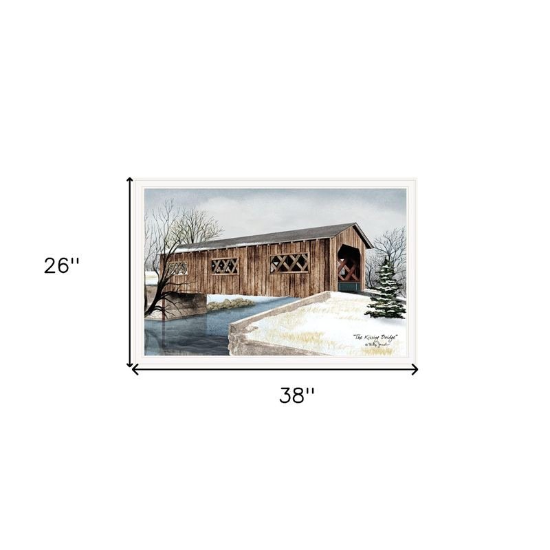 This the kissing bridge 5 white framed print wall art will add a beautiful decorative accent to your decor. This print is a visual artistic expression that allows you to decorate your space in style. Reproduced for you on paper, this hanging decorative accent will be a trendy and fashionable way to dress your walls. Adding this hanging wall art to your space to make your room feel more finished and attractive. Instantly liven up your space with this art that brings color and dimension to your walls. 26 inches H x 38 inches W x 1 inches D