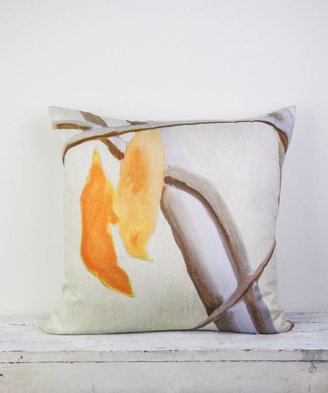Reversible 18″ square organic cotton sateen throw pillow with zipper closure. Pillow design is printed mirror image on both sides, for a beautiful kaleidoscope effect at the seams.