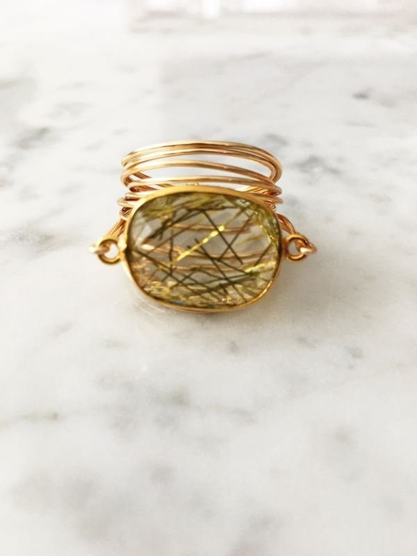 Available in your choice of wire, with a 14k gold bezel set semi-precious gemstone. These rings will vary slightly due to the individual nature of the stones which are semi-precious and unique.
